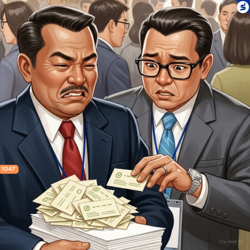 Khoảnh khắc Mai Chi tiến lại, một chuyên viên khác đã vội vàng chen ngang. Anh ta đưa ra một sấp tài liệu giấy dày và một chiếc danh thiếp cũ kỹ. Văn Thành lịch sự nhận lấy, nhưng ánh mắt ông lộ rõ sự mệt mỏi và không muốn ôm thêm gánh nặng thông tin không cần thiết.