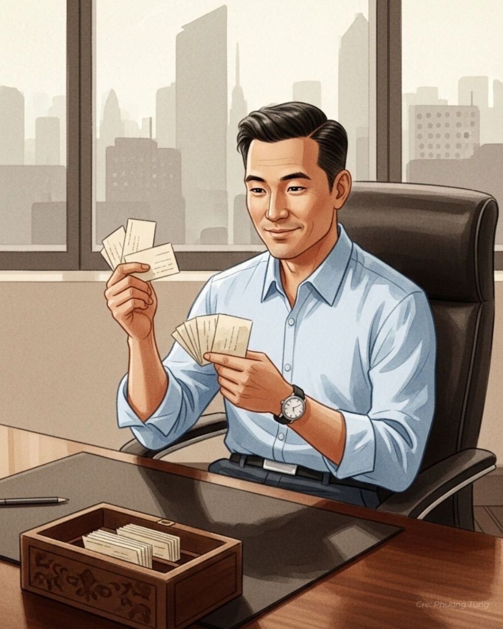 Danh thiếp điện tử đã mang đến cho anh Huy — một giám đốc kỳ cựu, nhiều năm gắn bó với thương trường — một cách kết nối hoàn toàn mới, hiện đại và tiện lợi hơn. Trước đây, anh luôn xem những cái bắt tay chặt và những tấm danh thiếp giấy là biểu tượng của sự chân thành và uy tín. Với anh, mỗi tấm thẻ không chỉ là một mảnh giấy, mà còn là một câu chuyện, một dấu ấn đáng nhớ trong hành trình sự nghiệp.