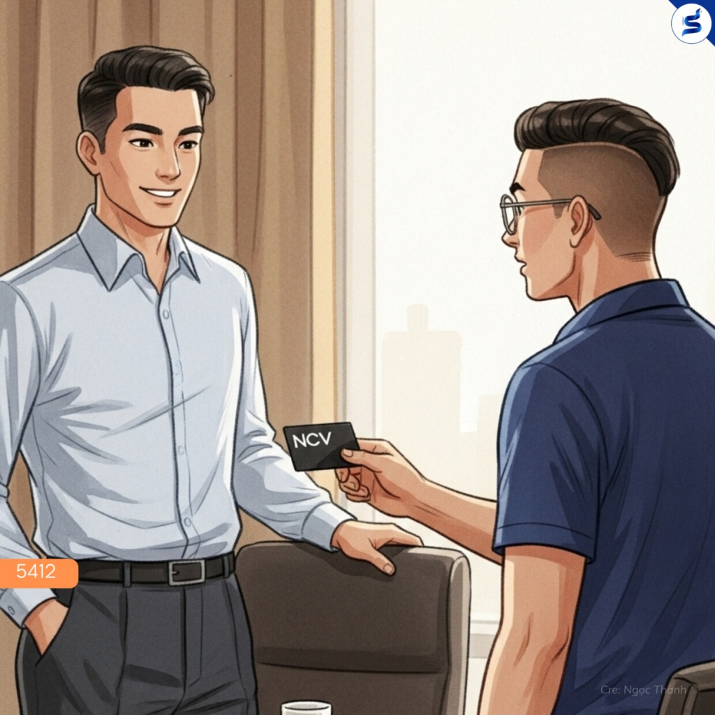 Khi buổi họp kết thúc, anh Minh nói: phần trình bày của anh rất xuất sắc. Anh có thể gửi cho tôi những dự án liên quan mà anh đã đề cập không? Tuấn mỉm cười, thay vì nói ôi sẽ gửi email sau, anh từ tốn rút chiếc thẻ NCV của mình ra.