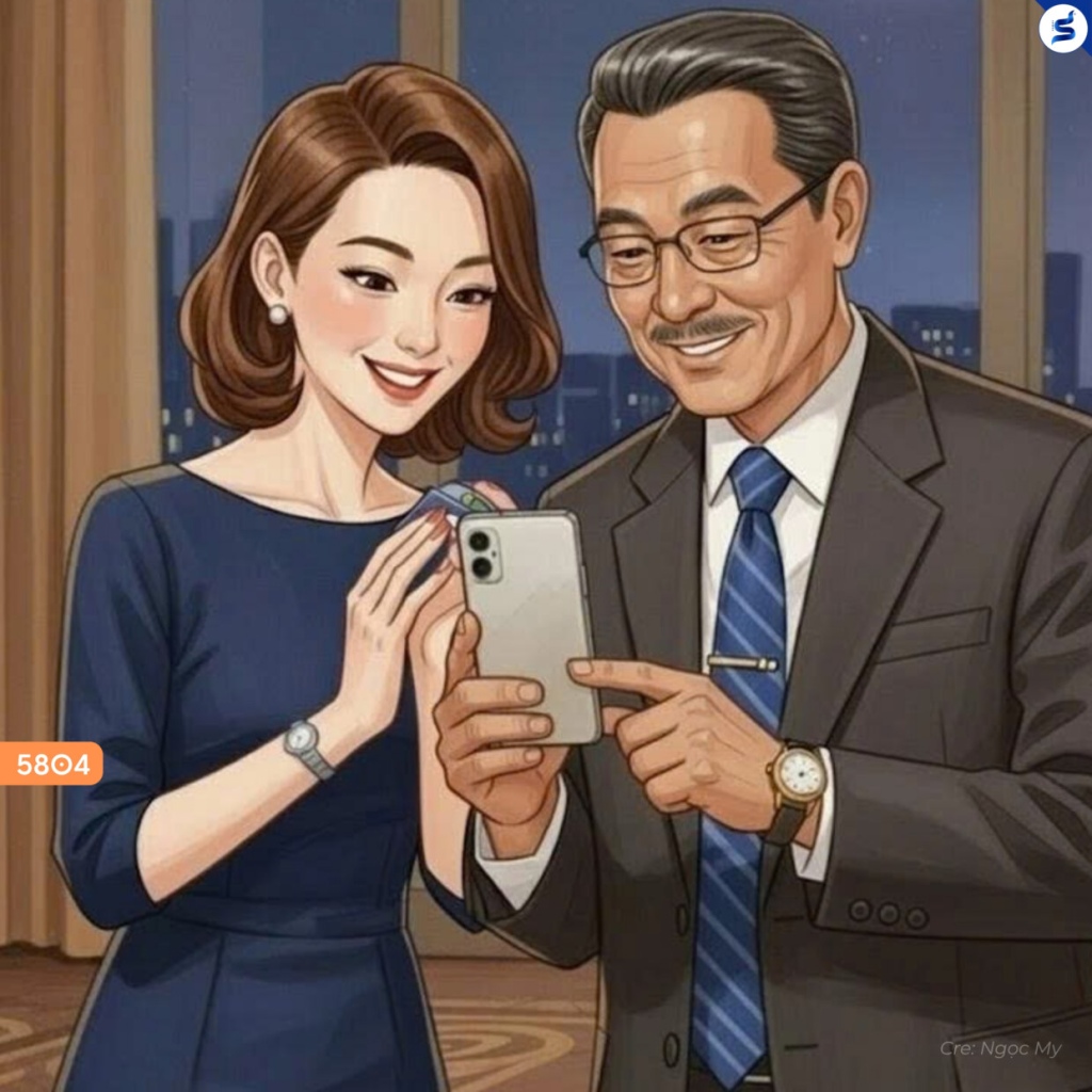 An Nhiên tròn mắt ngạc nhiên rồi bật cười. Cả hai không cần trao đổi thẻ. Ông Minh chỉ cần đưa điện thoại lại gần thẻ của An Nhiên: Ting. Một tiếng động nhẹ vang lên. Toàn bộ thông tin của cô: số điện thoại, email, mạng xã hội, portfolio dự án… tất cả đã hiện lên trên màn hình điện thoại của ông một cách hoàn hảo: Tuyệt vời. Ông Minh thốt lên: Nhanh chóng, hiệu quả và rất chuyên nghiệp.
