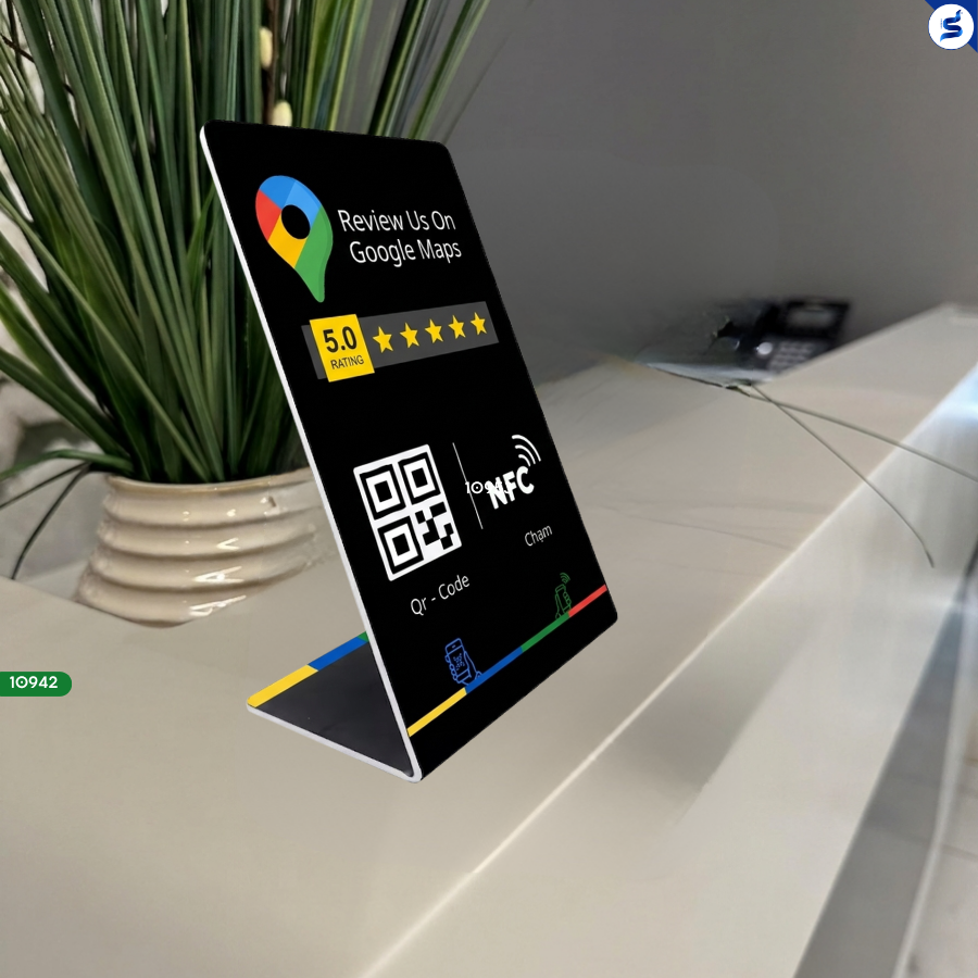 Giúp khách hàng để lại đánh giá 5 sao chỉ trong 3 giây. Tăng uy tín, cải thiện thứ hạng tìm kiếm. Thiết kế sang trọng, in logo tùy chỉnh